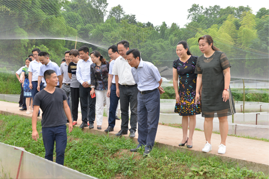卧佛镇黑斑蛙养殖基地主要从事黑斑蛙孵化、养殖、销售,为养殖农户提供技术指导和优质种苗,其所在的潼南区玉源养殖专业合作社是市内黑斑蛙天然驯养规模最大、技术最成熟的养殖基地。曾菁华来到养殖基地,近距离察看不同阶段蛙苗养殖和生长情况。他说,发展特色效益农业,一定要因地制宜,紧密联系市场。在促进企业健康发展同时,积极发挥帮扶和带动贫困户增收作用,做到经济效益和社会效益兼顾。要加强生产管理,提升养殖技术,以更优质产品占领市场,赢取消费者认可。