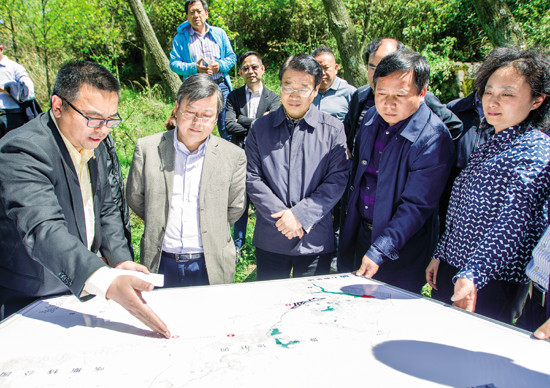 4月18日,重庆国际赛车场旅游综合开发项目考察洽谈会在我区举行。这是与会人员在山王坪实地考察。记者喻梵摄