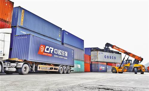 3月23日,重庆整车进口口岸,工作人员在吊运平行进口汽车集装箱。当日,又一列中欧(重庆)班列回到重庆,搭载的53台平行进口汽车,其中两台宾利添越轿车为重庆汽车口岸新增的进口品牌,每台市值400余万元。至此,中欧(重庆)班列开行6年后成功突破1000列,成为我国首个突破千列的中欧班列。通讯员 何超 摄