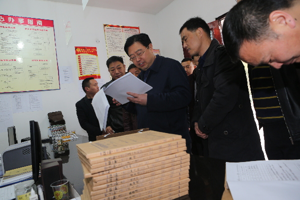 县委书记李春奎在检查脱贫档案卢先庆摄