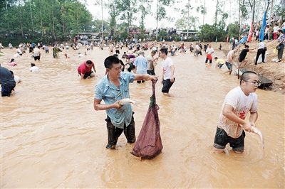 昨日下午2点半,涪陵2019年中国农民丰收节活动在蔺市美心红酒小镇举行,上万条、约10吨的大鱼免费抓,吸引大量游客参与。 上游新闻记者 任君 摄