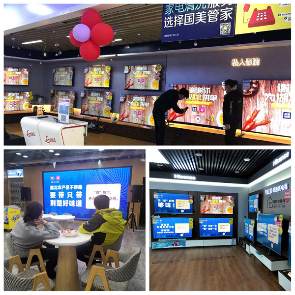 ▲自4月1日起,国美2000多家商超电子屏幕开始播出央视新闻“谢谢你为湖北拼单”微倡议公益海报。