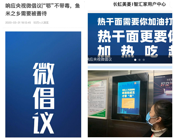 为助推待销的湖北农副产品走出去,拓展销路,为群众增收,央视新闻迅速策划,发起“谢谢你为湖北拼单”媒体公益行动,呼吁全国网友下单购买湖北农副产品,困难时期拉湖北一把。相关公益倡议海报3月27日发布之后引爆网络,同时在北京、上海、广州等近400座城市86万块屏中播放,引发广泛反响。
