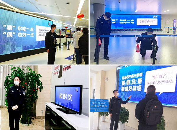 ▲在江苏南京禄口国际机场,南京港、无锡、泰州、常熟、江阴、镇江、淮安、盐城、启东出入境边防检查站执勤现场、办证窗口等场所,央视新闻微倡议公益海报就在旅客身边。
