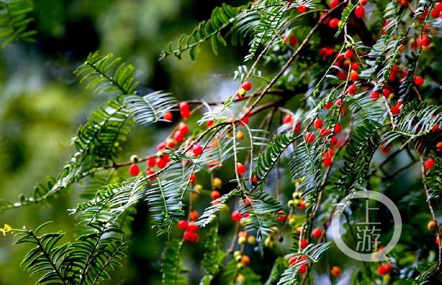红豆杉的果实十月怀胎,十月结果,象征美好的爱情。今年进入11月后,漫山遍野的红豆杉挂满枝头,期待市民浏览观赏。