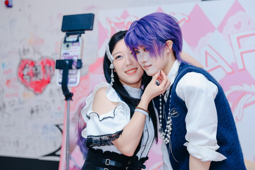 活动主会场以《恋与深空》等头部国乙IP场景为核心,1:1复刻游戏经典约会场景,辅以全息投影技术与氛围灯光,构筑出五大主角主题打卡区。参与者不仅能与高精度还原的Coser互动合影,更可体验限定版「证件照」,现场尖叫与心动值持续爆表。