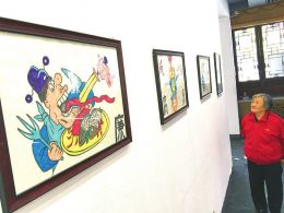 10月10日,一名老人被悬挂的廉政题材漫画所吸引。在“九九重阳节”即将到来之际,太原市迎泽街道办事处在晋商博物馆,举办主题为“忆峥嵘、书廉韵、赋重阳”书画展览,百余件作品全部来自迎泽街道的老年业余书画爱好者。