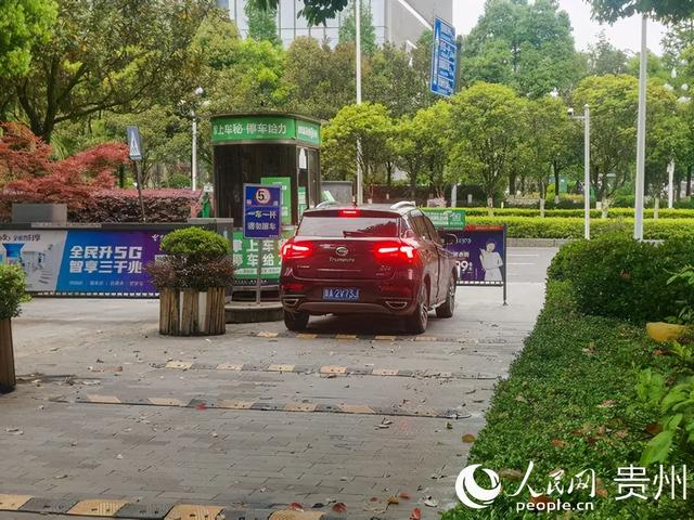 一辆汽车正驶出贵阳市观山湖区一家共享停车场。人民网 李宇摄